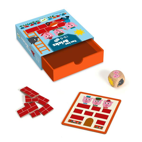 Build your house brick by brick using the die! But beware of the wolf who huffs and puffs and could blow it all down! Content : 1 die, 32 bricks, 4 ‘house’ boards and a set of game rules in 10 languages.