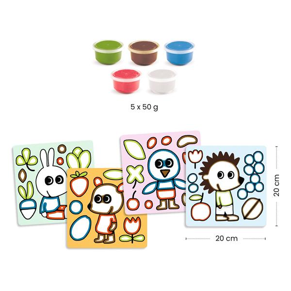 Thanks to the 4 boards with hollows and 5 tubs of air-dry modelling clay, the child simply fills each area to create lovely textured pictures. Quick to set up, mess-free and including a clear instruction booklet, this sensory activity develops fine motor skills and perception of colour... Children can create and have fun without getting messy.