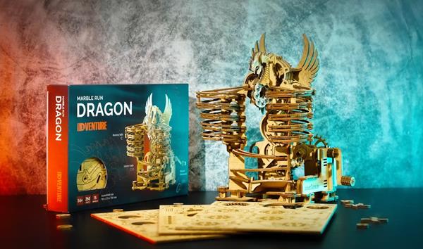 EXCITING HANDICRAFT PROJECT: iDventure Marble Run Dragon is a wooden kit that you can use to assemble your own marble run. Escape the stress of everyday life and improve your concentration. The construction time is about 6 hours.
