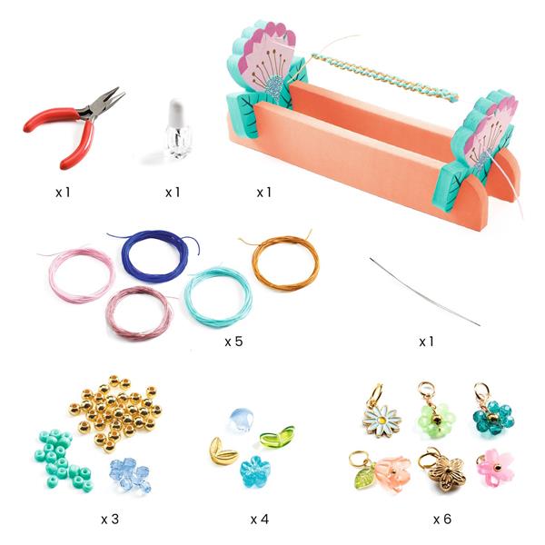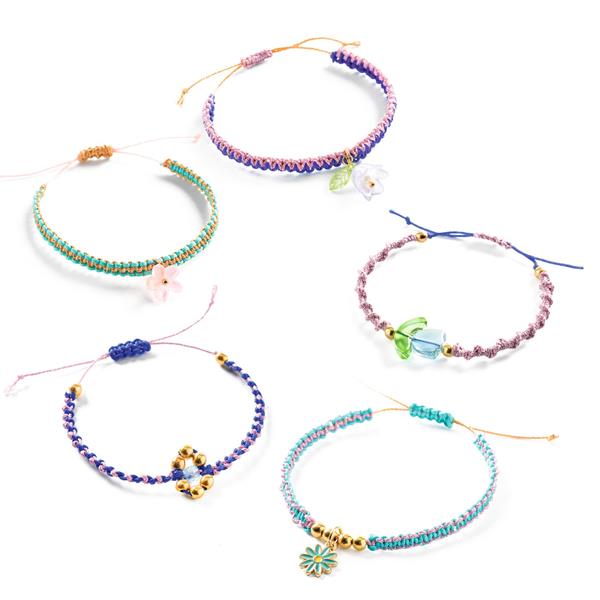 Tout ce qu'il faut pour faire facilement 10 bracelets en macramé et perles. Contenu : 1 aiguille. Un flacon de vernis.1 pince. 6 charms. 7 sortes de perles. 5 couleurs de fil dont 1 doré. 1 outil en mousse. 1 livret explicatif pas à pas