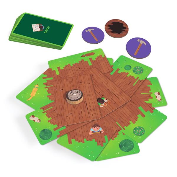 Mettez votre tenue de chantier et réalisez votre rêve : construire la plus grande cabane ! Mais attention au chat et aux chiens, soyez précis et délicats pour qu’elle ne s’écroule pas avant que les 3 marteaux ne frappent. Un jeu coopératif, rapide et plein de surprises à chaque partie !