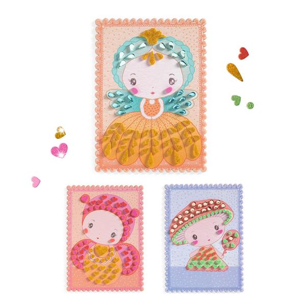 3 cartes à décorer en carton épais imprimé, avec mosaïque effet pailleté et brillant.