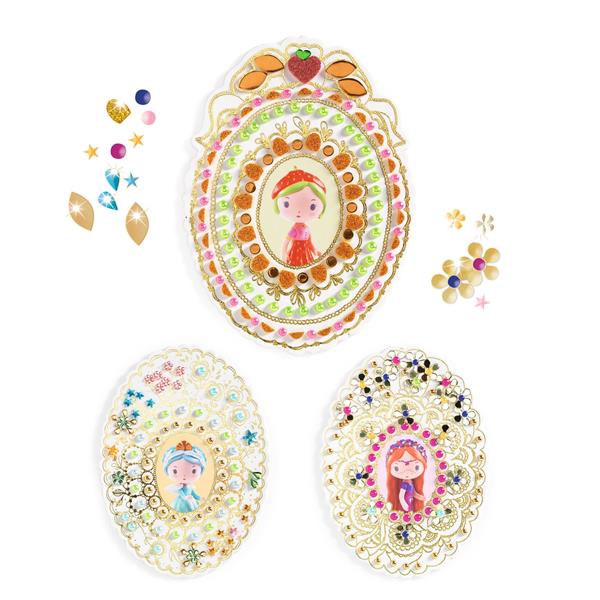 3 médaillons en carton épais imprimé avec un estampage doré, à décorer avec : gemmes, perles, mosaïques pailletées, effet métallisé.