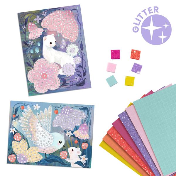 Une activité de collage pour créer des images en mosaïques. Pour faire scintiller ces beaux paysages de sous-bois, l’enfant complète les tableaux avec les petits carrés de mousse adhésive et pailletée en suivant pas-à-pas les indications du livret.