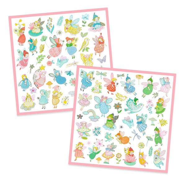 Une pochette de 160 stickers métallisés sur le thème indémodable des fées. Fillette aux ailes scintillantes, tendre lutine, poussière d'étoile ou fleur aux reflets magiques, l’enfant colle les nombreux stickers librement pour composer ses propres saynètes ou décorer ce qu’il souhaite !