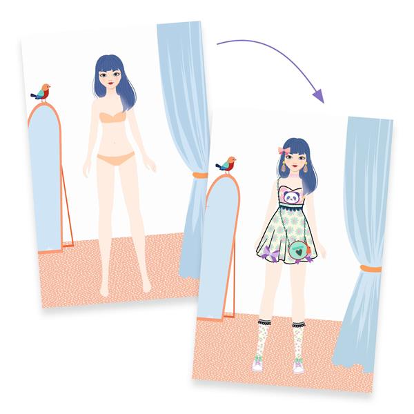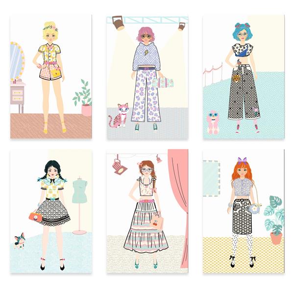 Un coffret pour les stylistes en herbe ! L’enfant choisit une carte de silhouette et utilise les vêtements pré-découpés comme pochoirs pour les reproduire facilement sur le dessin. Ensuite, il dessine un motif parmi les planches proposées et complète sa création avec les stickers dorés. Chaque dessin devient ainsi une véritable œuvre de styliste, originale et personnalisée.
