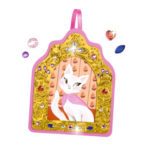 Un kit créatif pour réaliser une galerie de portraits de chats dans de jolis cadres en métal à repousser. Il suffit de repasser sur les illustrations imprimées au dos des cadres en métal et comme par magie, les motifs en relief et en creux apparaissent de l'autre côté. L'enfant n'a plus qu'à disposer les 3 cadres sur les 3 portraits, et à les enrichir de pierres précieuses autocollantes. Des rubans satin permettent ensuite de suspendre les portraits qui peuvent être utilisés en objets de décoration, joliment disposés sur un mur.